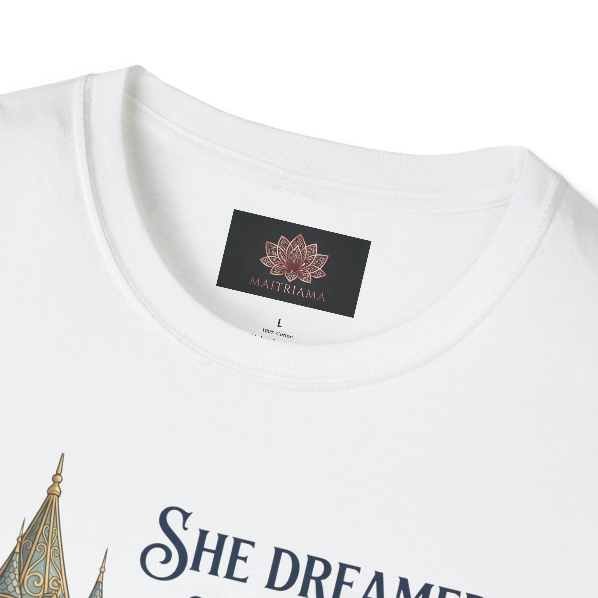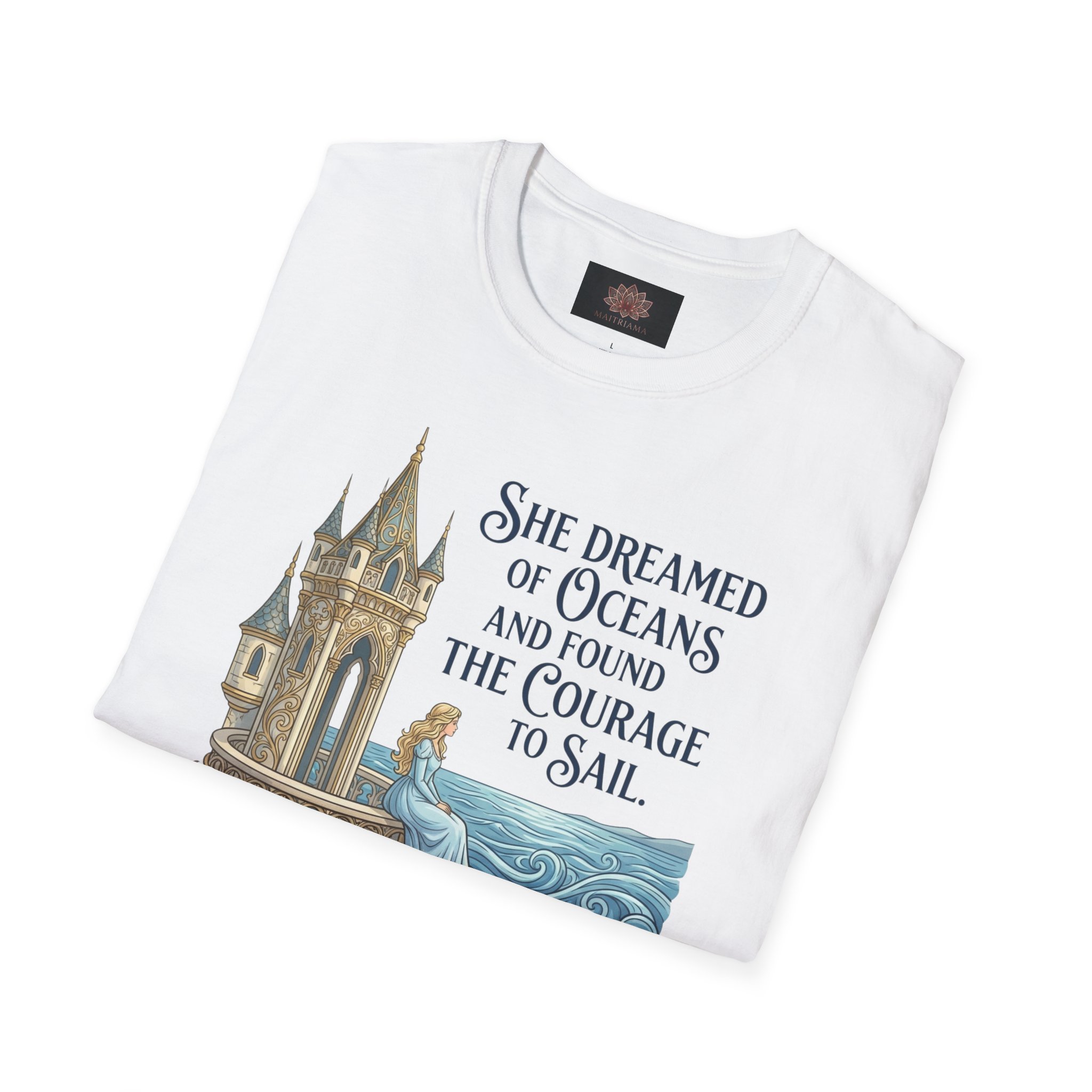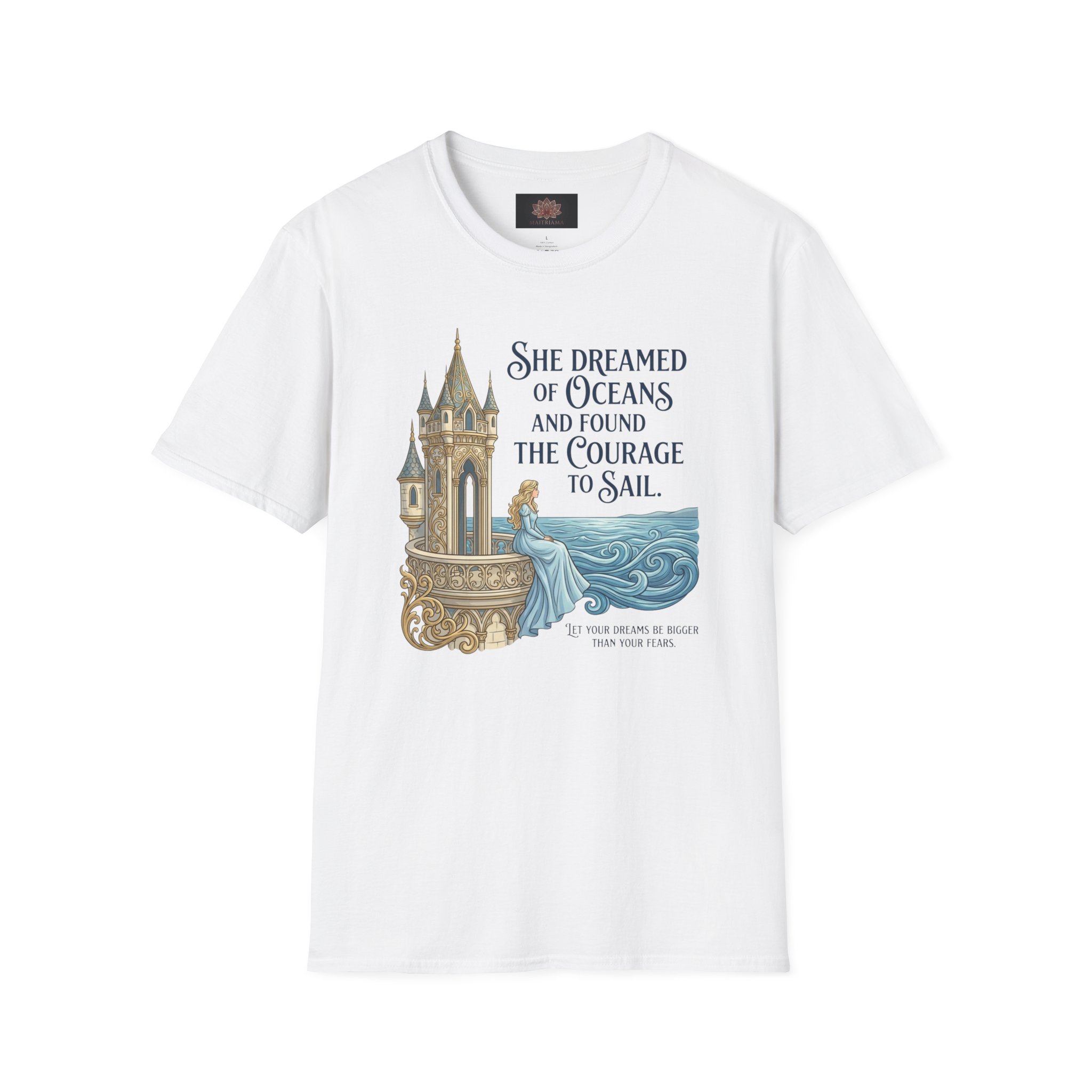 She Dreamed of Oceans and Found the Courage to Sail quote resembling the beauty of manifesting your dreams. Lightweight ring-spun cotton drapes softly across the shoulders and settles warm against the skin, so it’s easy to reach for after a long day, during a morning meditation, or while journaling with a cup of tea. The subtle metallic tone gives the message a little lift without shouting; it reads like encouragement from a friend. Built to last and comfortable enough for everyday rituals, this shirt becomes part of the small practices that steady the mind.